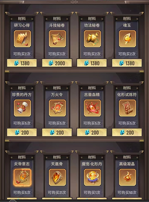 在宗门大殿的左侧,是宗门商店,可以利用宗门任务获取的贡献在这里购买相应的道具、材料、斗技、和丹器等物品。