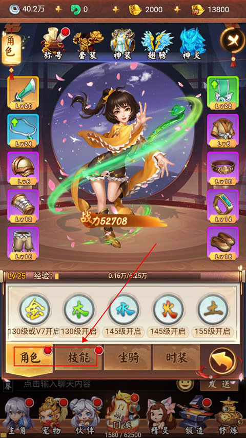 - 为主角穿戴装备提升战力,并解锁升级技能