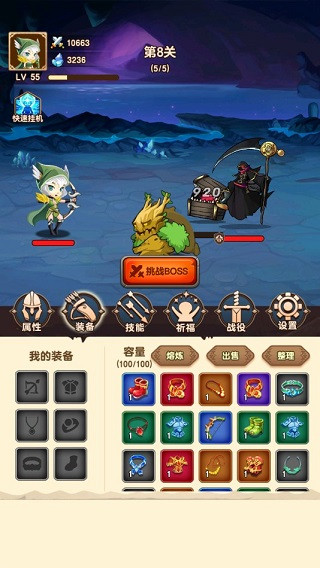 在这里一切装备靠打,轻松挂机,快乐刷怪,丰富的关卡机制,外加极具挑战性的Boss关卡,纵使这款游戏不需要玩家的手动操作,但在视觉感的营造上也是众多宅男玩家的新选择。提供离线还有离线收益,简单、轻松地养成方式,令你快速提升战斗力,收集神装,升级神技,挑战超强boss,最后带给玩家满满得养成体验。