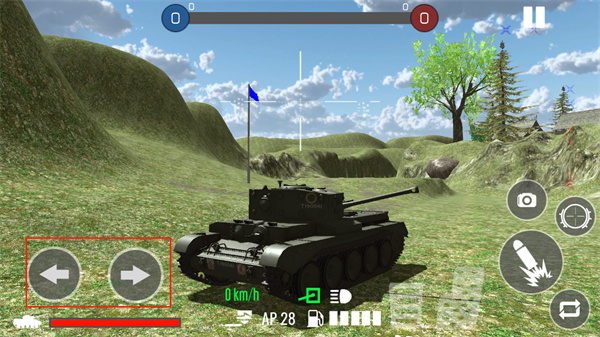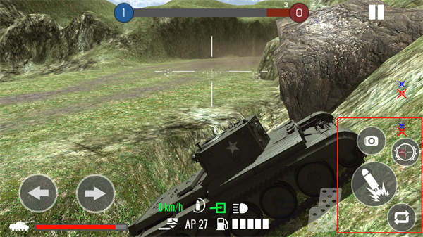 坦克模拟器游戏的玩法十分的简单,玩家再进入游戏前需要根据需求选择地图,还可以设置灵敏度、游戏模式、获胜比分等等,再次选择玩家喜欢的坦克即可进入游戏。随后玩家可以通过方向键来控制坦克攻击方向,点击油门来移动坦克,当发现敌方坦克,玩家可以点击右下角的攻击按钮进行攻击。