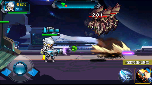 4、当出现在天上飞的怪物时,点击按钮可进行射击;