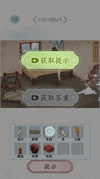 玩家在游戏内碰到无法解决的难题时,可以点击屏幕下方的提示,之后点击提示之后可以获取答案,不需要看广告。点击即可直接获取。