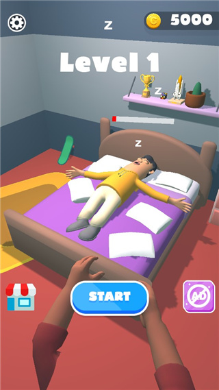 1、卡通画风,可爱角色,增加游戏乐趣,享受更多的惊喜。2、欢乐的游戏体验,可以运用各种不同的道具,将人叫醒。