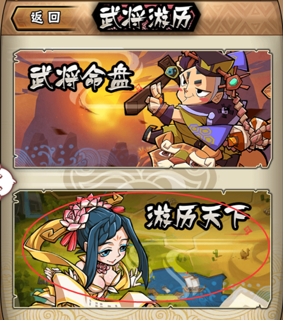 1、玩家可通过“武将游历”的首页,“游历天下”的入口进入。