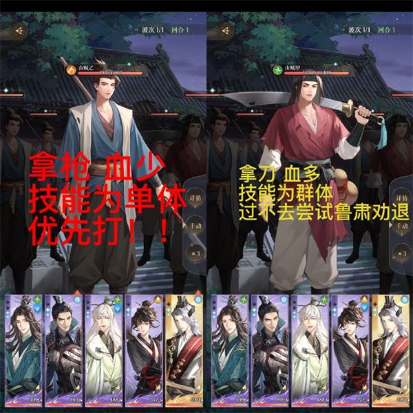 赌鲁肃劝退:适用于怪的技能是群攻,我们阵容只能吃三个怪的群攻,但对面有五个怪,我们就需要在怪第一次放技能的时候,集火打掉一个怪再劝退一个怪