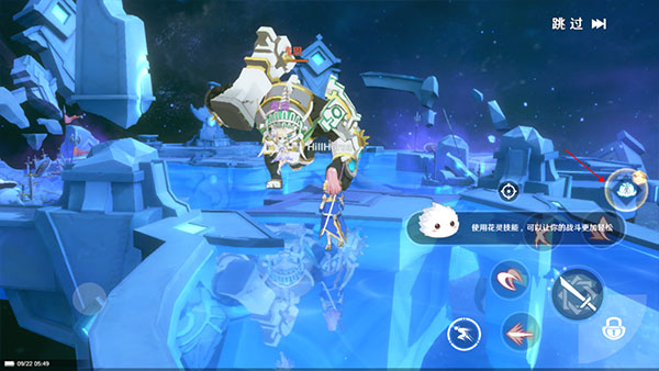 7、遇到大BOSS就可以点击右侧的花灵技能,可召唤自己的小花灵释放更强技能。