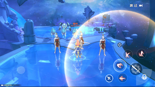5、然后开始新手教学,左下角摇杆操作角色移动,右下角是普攻和角色的四个技能。