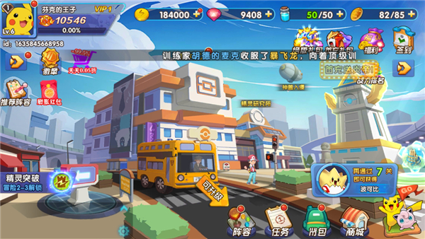 游戏里有大量章节任务,完成任务就能免费领取稀有的精灵、抽奖券和VIP特权。推荐阵容包括皮卡丘搭配各种强力精灵,比如水君、快龙、飞天螳螂等。游戏特色也很吸引人,比如开局送UR超梦和大量钻石金币,充值折扣低至0.05折,还有每日签到送SSR暴鲤龙和首充送UR炎帝的福利。