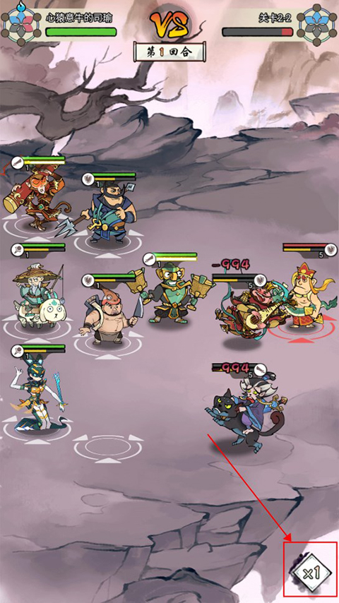 5、搭配好阵容后就可以继续主线挑战啦,进入关卡后双方会自动开始回合制战斗,玩家可以点击右下角倍速按钮加快战斗速度。