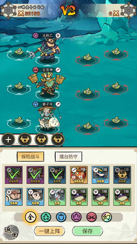 4、培养好英雄之后就可以搭配英雄阵容啦,可以自由搭配,也可以一键上阵。