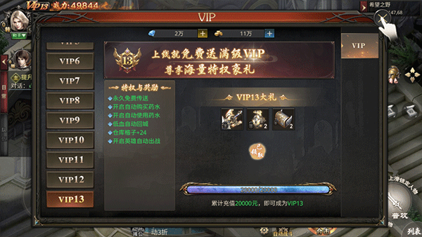 此外,守护者传说除了玩法丰富,其内的折扣礼包也是毫不含糊,全是冰点折扣,货币首充全档位0.1折!特惠0.1折商城!超值特权卡1折!玩家上线还可领取永久精灵和满级vip豪礼特权,稀有装备、珍贵装扮,穿戴上就是最大化移速,让你不花钱就可以体验当大佬的感觉!还有世界级地图打BOSS夺宝,两阵营争霸等你来挑战。