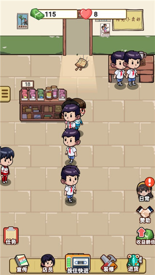 如同《网吧模拟器》一样,通过对外的宣传可以提升顾客的流量,如此一来便可增加小卖部的收入,而且店里的装修越是丰富,收入也越高,别忘了给门面升级哦!