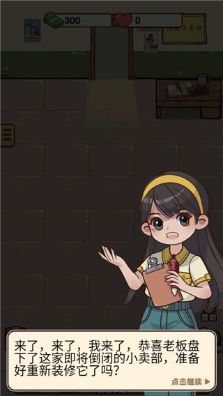 2、这里会交代游戏剧情,讲述了你盘下了一个即将倒闭的小卖部;