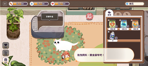 7、拖曳猫食,可以对猫咪进行喂食。