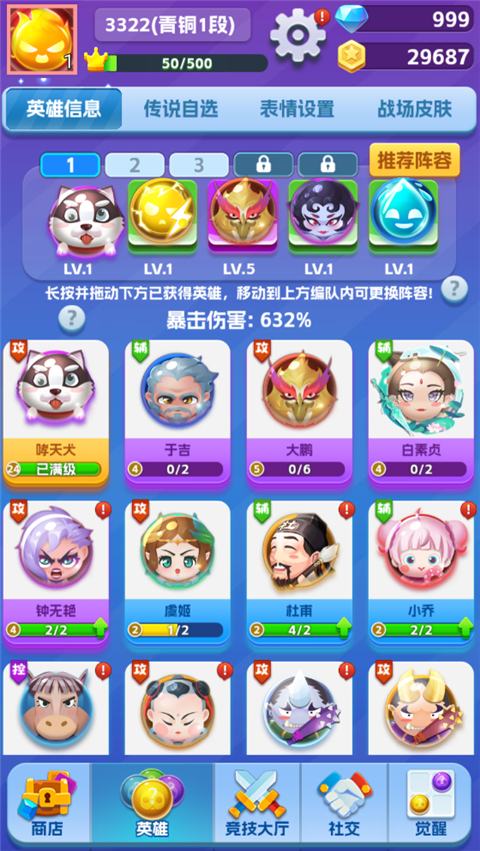 游戏中当存在相同英雄可以合成升级,获得全新的角色,帮助你更好的击败敌人,获取胜利,支持创建房间,还能邀请好友一起PK游玩!