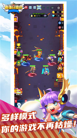 4、多种玩法:无需任何操作的推关战斗模式!挑战英雄强度和阵容搭配的爬塔战斗!还能与其他召唤师们进行同台竞技!