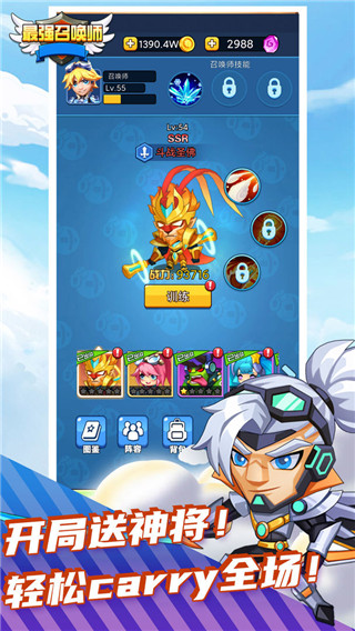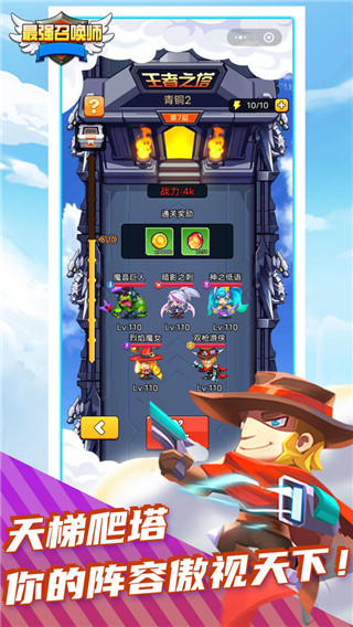 1、下载进入最强召唤师游戏,通过挑战关卡可获得强大的英雄;