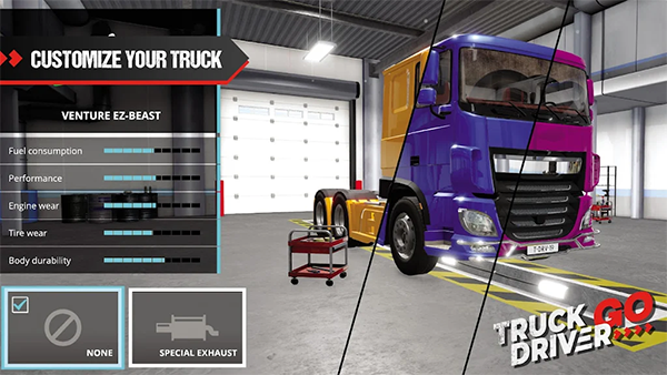 - 游戏内可购买心仪卡车并进行个性化改装升级。