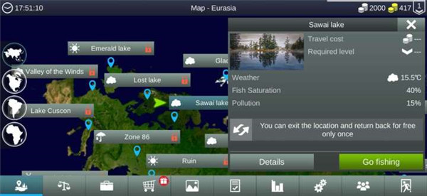 1、玩家进入游戏之后就可以选择区域进行钓鱼了;