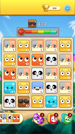 5、当滑动表情包没有进行合成,上方的血条会减少一格;