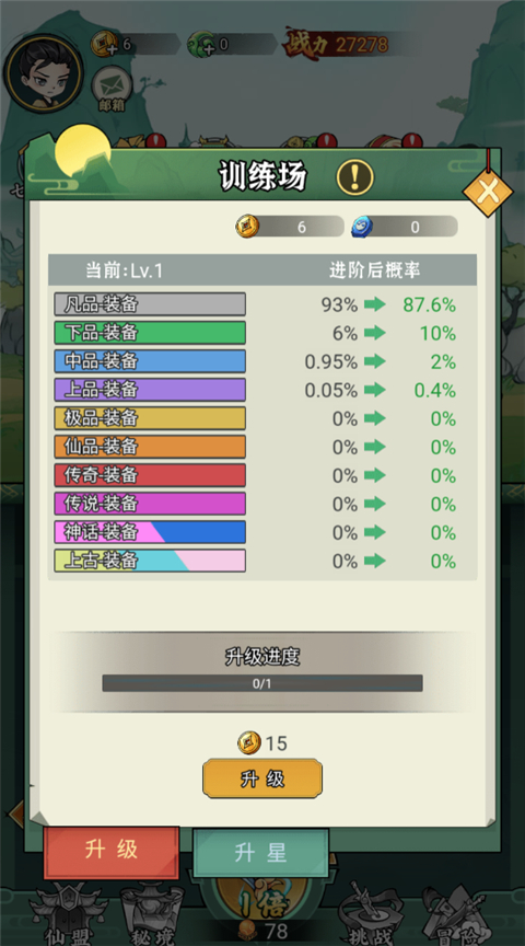5、装备的掉落与训练场等级相关,升级训练场可以提升高属性装备