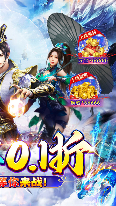 刀剑演武0.1折是一款3D打造大型热血国战福利游戏,玩家创角后即可攻防命属性丹*10、元宝*66666、铜钱*66666、称号·英姿飒爽,全部礼包充值只需要0.1折,648现在只要6.48,非常优惠!
