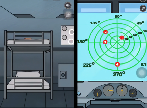 3、传达室的新邮件提示潜望镜可以正常使用了,找到左右两边的潜望镜打开,结合潜望镜以及旗语表上小人手的方向得到旗语口令;
