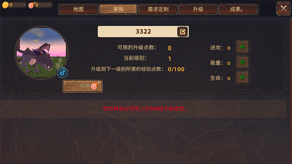 6、点击头像还可以进入信息菜单面板,分为几个选项卡,可以使用地图,改进角色,生孩子,获得成就等,需要退出点击右上角就可以关闭菜单。