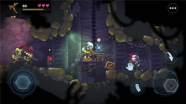 游戏中还有多种道具,合理使用可以帮助你击败僵尸,玩法上简单且灵活,玩家可以操控人物移动的同时进行跳跃攻击,局内拥有三条生命值,全部消耗需要重新挑战,因此巧妙的走位和合理的操作是非常重要的。