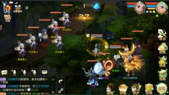 2、衡山君:这关没有特殊机制,衡山是魔宫职业,丹灵道人佛门。黑虎道人唐门,洋光道人是蜀山,这关整体的伤害不是很高,所以优先集火丹灵道人,再集火衡山君,最后清理其他职业。