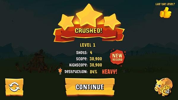 6、石块用完之前击倒所有的敌方城堡即可获得胜利。