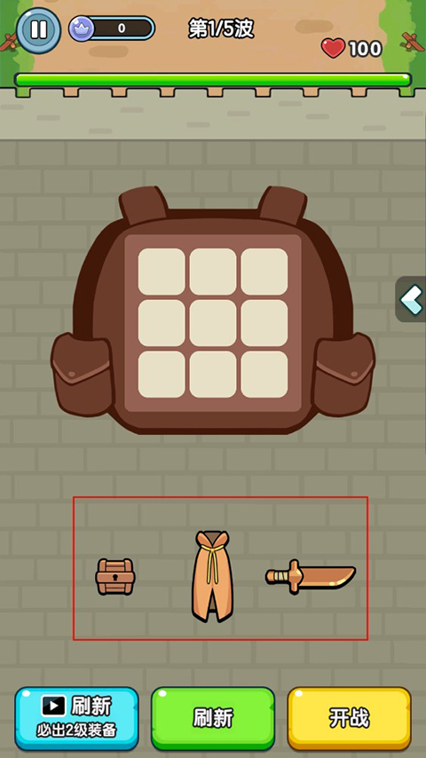 1、玩家在进入关卡前,可以先选择装备进入游戏,将下方装备拖入九宫格内即可,只要放得下可以全部携带哦。