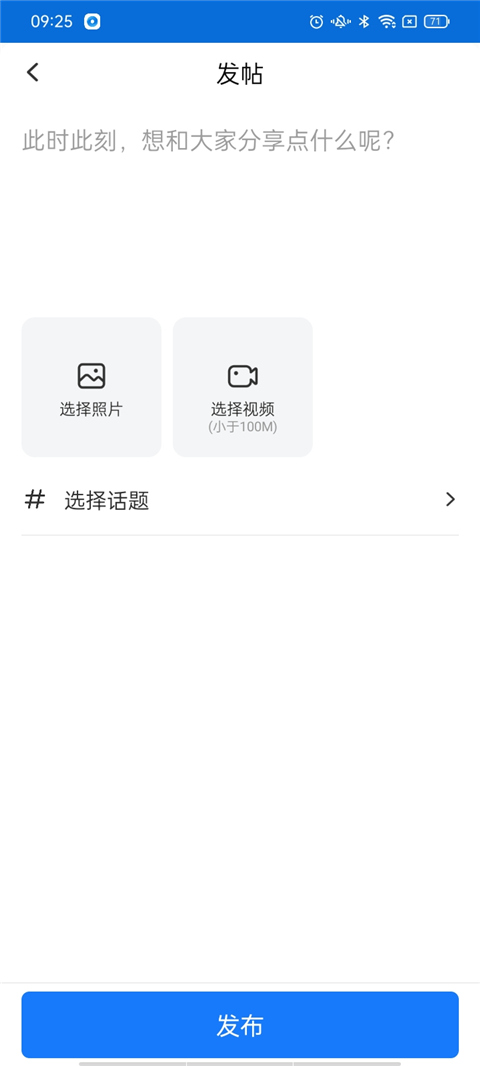 3、这里小编就以发帖为例子,点击发帖即可编辑内容还可以附带照片或者视频;