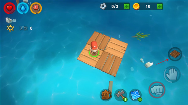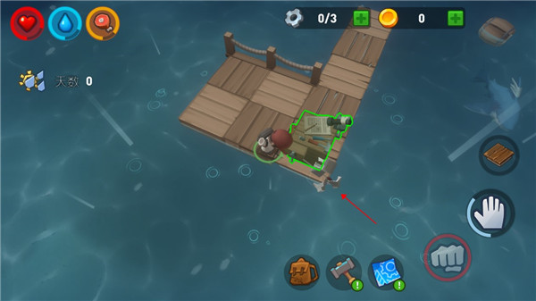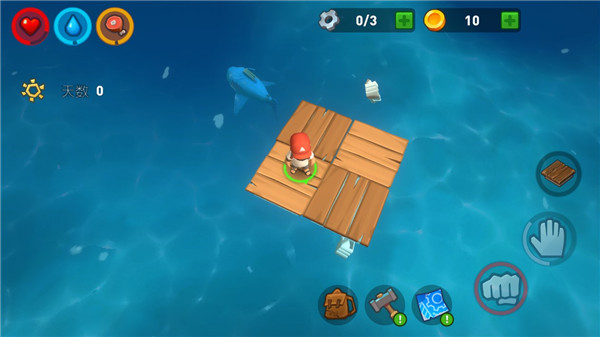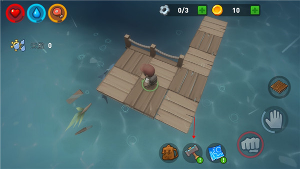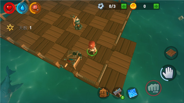 玩家千万要注意不要长时间在水下活动,因为水里可能会有鲨鱼攻击玩家哦,我们可以在木筏上通过钓钩来将自己身边的物资打捞上来,如果物资很多很近,大家可以适当的下水把它们带上来,一定要快哦。随着时间的流逝,水里的鲨鱼还会时不时过来攻击你的木筏,所以玩家需要注意保护好自己的竹筏,建造更加结实的堡垒。
