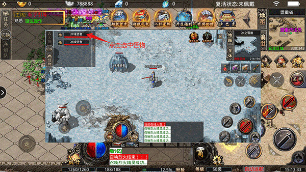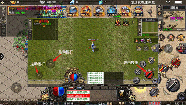 4、高自由度的战场设定,简单粗暴的人物操作,带你实现最原始的传奇玩法。
