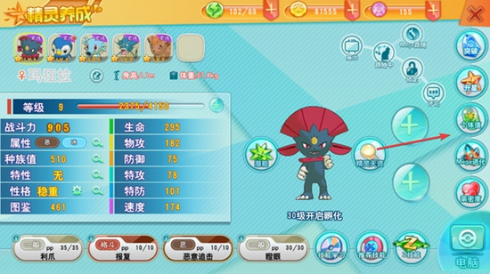 2、然后在右侧找到mega进化的图标,并且点击它,进入mega进化界面;