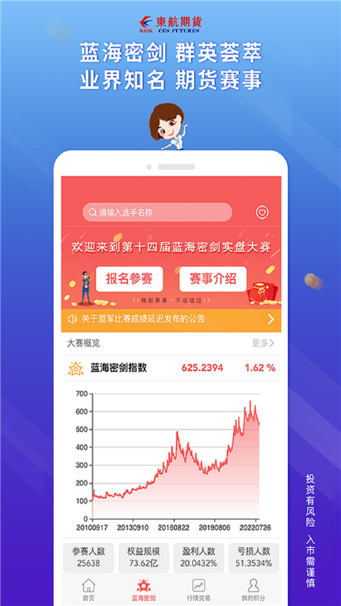 作为业界知名的期货实盘赛事品牌“蓝海密剑”的主办方,东航期货已成功举办十余届比赛,累计参赛选手超过2万人次,为投资者提供了展示实力的舞台。