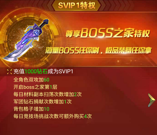每日材料副本扫荡次数增加2次每日竞技场挑战次数可额外购买4次