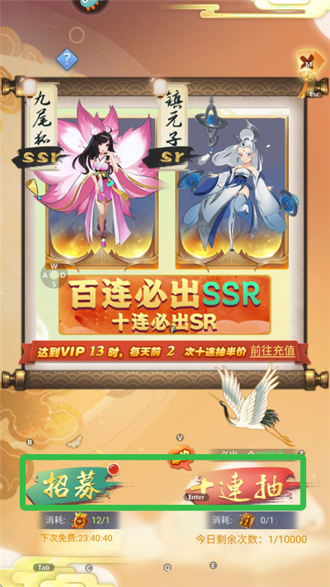 2、玩家可在招募中进行单次或十连次伙伴招募。