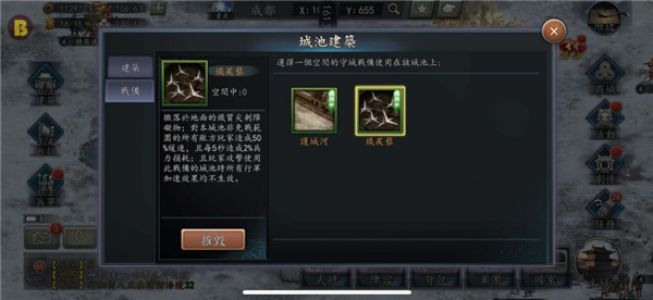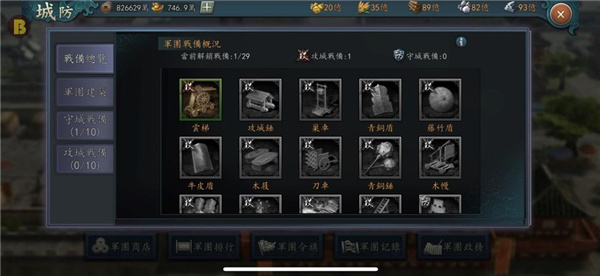 占领城池之后,民心值达到「信赖」时,即可以为占领军团解锁更多战备建造,此外,王城和洛阳拥有其独有的战备。