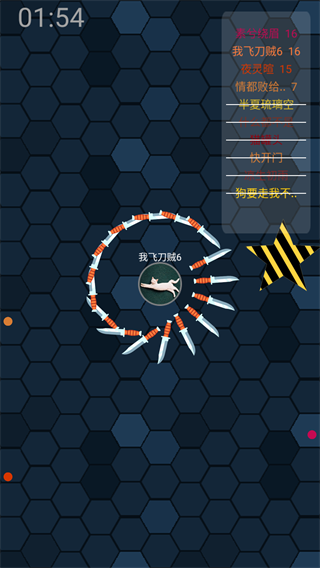 我的飞刀玩的贼帅官方正版是一款非常有意思的休闲吞噬类游戏,这真是一款非常不一样的吞噬游戏,之前的吞噬球球点点,通过吞吃别的球球来变大自己已经让小编觉得非常的有意思了,现在小编推荐的这款飞刀吞噬游戏,也是非常的有意思,玩家通过在地图中吞噬飞刀来壮大自己,获得和其他玩家竞技的资本,初始玩家的飞刀会环绕在自身四周就像是御剑飞行防御一样的,在你的飞刀接触到别人的飞刀一样以后,双方同等的飞刀都会被弹飞,你可以重新捡回来,趁机变大,重新发育哦。