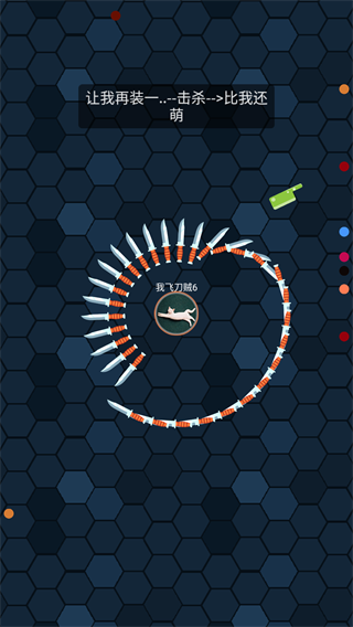 这款游戏看起来挺有意思的,玩法很独特。玩家通过收集飞刀来变强,还能和其他人对战,感觉有点像之前的吞噬类游戏,但这次用的是飞刀,更有新鲜感。操作简单,转圈就能攻击,还可以捡别人的飞刀壮大自己,这点设计得很巧妙。