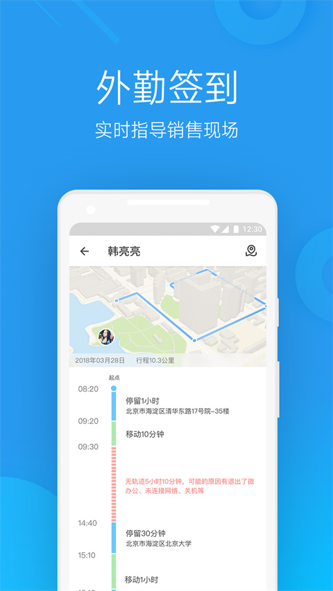 - 通过精准的位置签到和水印拍照功能,确保外勤记录的真实有效。