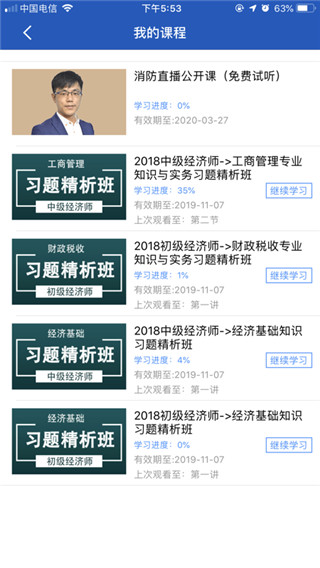3、可以在我的课程里查看自己的课程,同时也可以查看自己的上课进度。