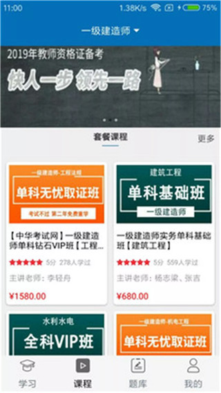 2、点击课程,为用户提供管理海量的精选优质课程,用户可以根据自己的需要的选择购买。