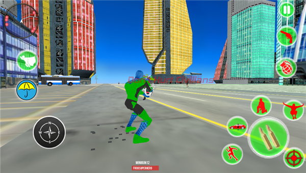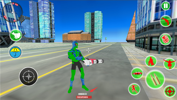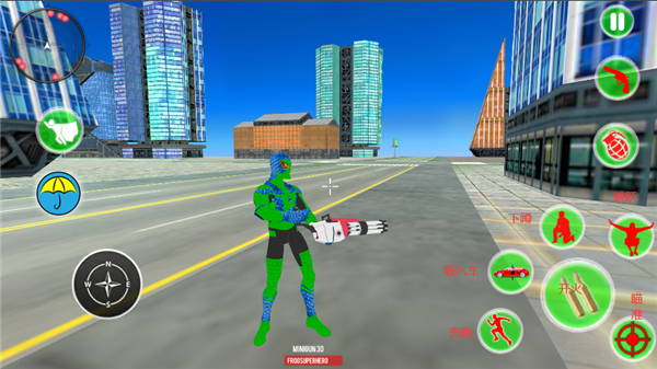 2、角色扮演和一些疯狂的武器,玩惊人的青蛙工作,在城市维护和平。