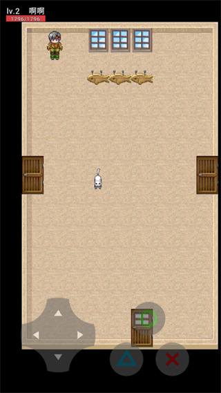 2、进入游戏,游戏采用像素风格和竖屏模式打造,左下角控制人物走动,右下角则是各种互动按键。
