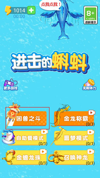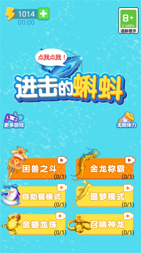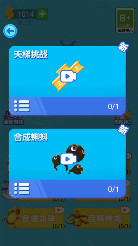 进击的蝌蚪是一款好玩的一款游戏合集,在这里玩家们能够找到合成蝌蚪、召唤神龙、金蟾龙珠等等小游戏进行,每一个游戏都是简单又休闲,可以让玩家们在休闲的时候玩上一会,打发无聊的时间,只需要花上2、3分钟时间,就能够享受一下游戏的乐趣。