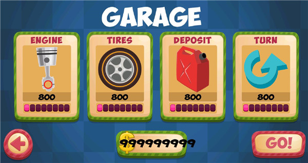 1、进行车辆升级,打造独特专属的赛车2、收集装备和道具,来挑战高难度的关卡