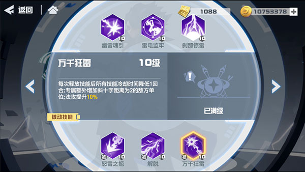 1、每次释放技能后所有技能冷却时间降低1回合,专属额外增加斜十字距离为2的敌方单位,法攻提升10%